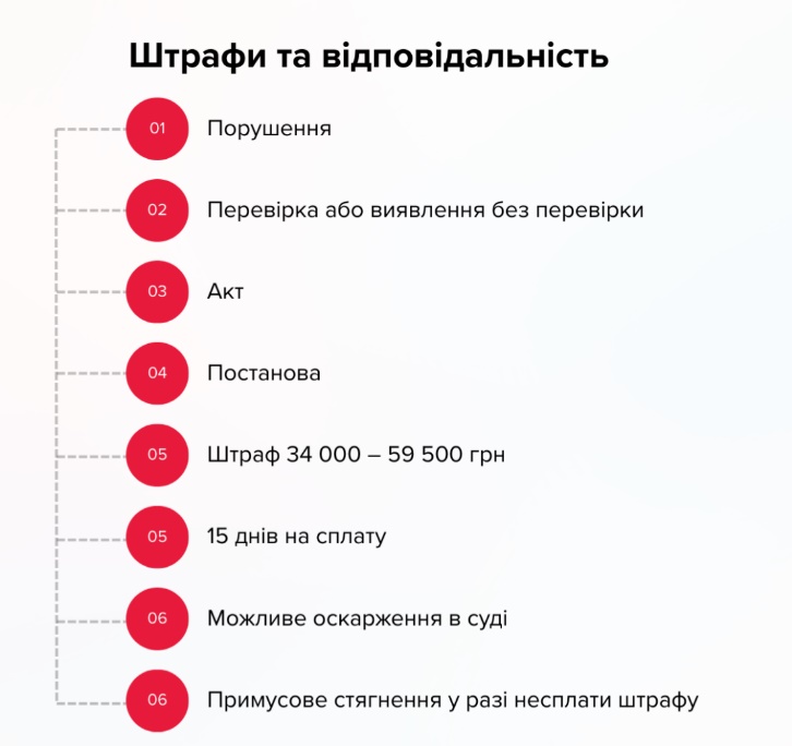 Згідно зі ст. 210-1 КУпАП штраф на посадових осіб складає від 2000 до 3500 НМДГ (34 000 - 59 500 грн).